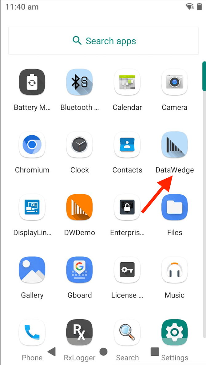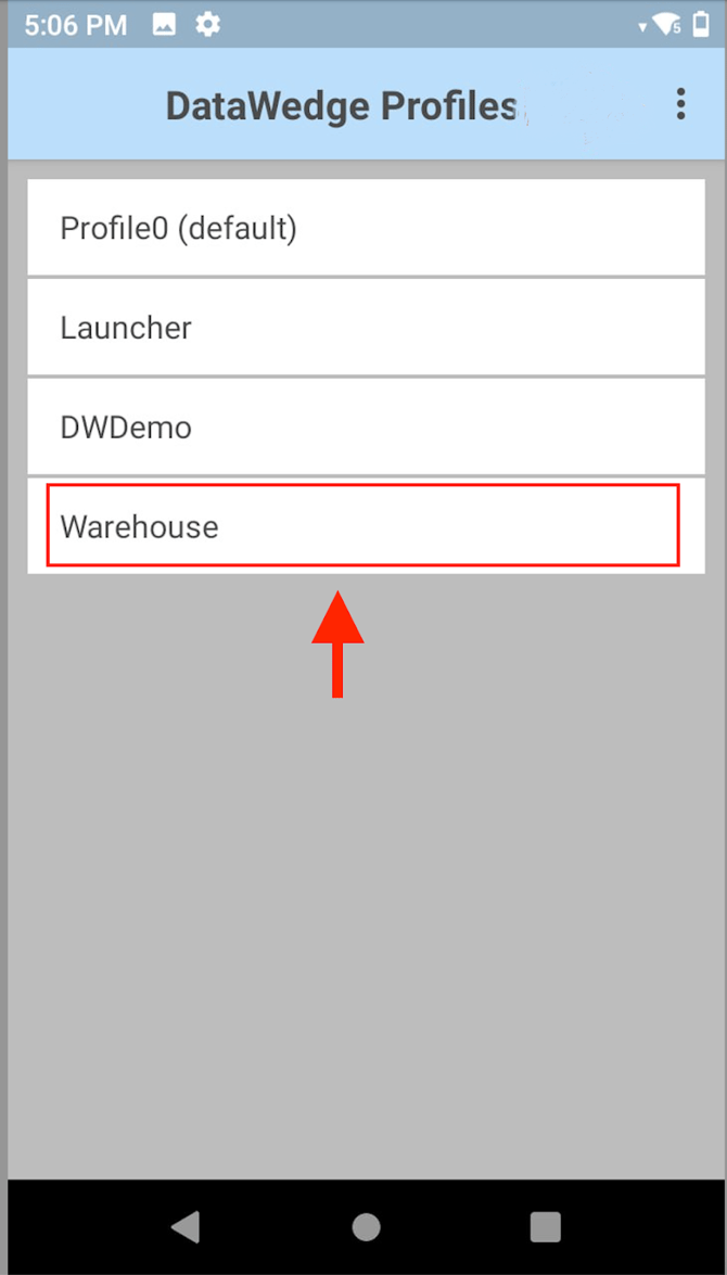 Note: If DataWedge had been opened previously, it will reopen to the last screen used. If necessary, press BACK until the Profiles screen appears.