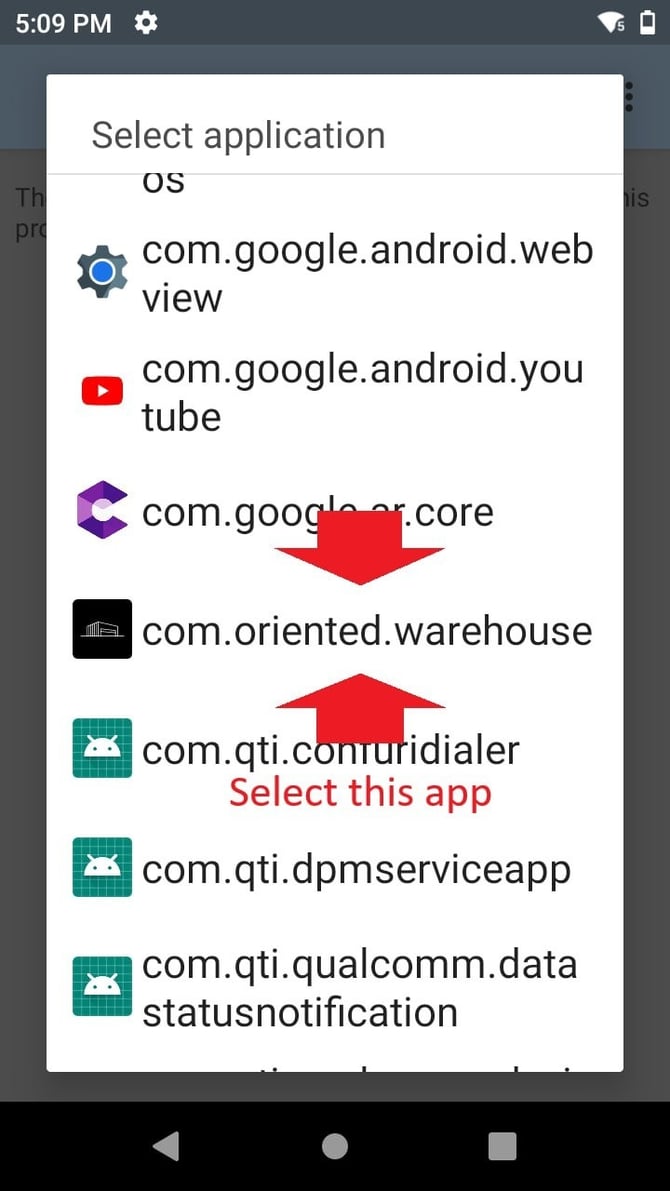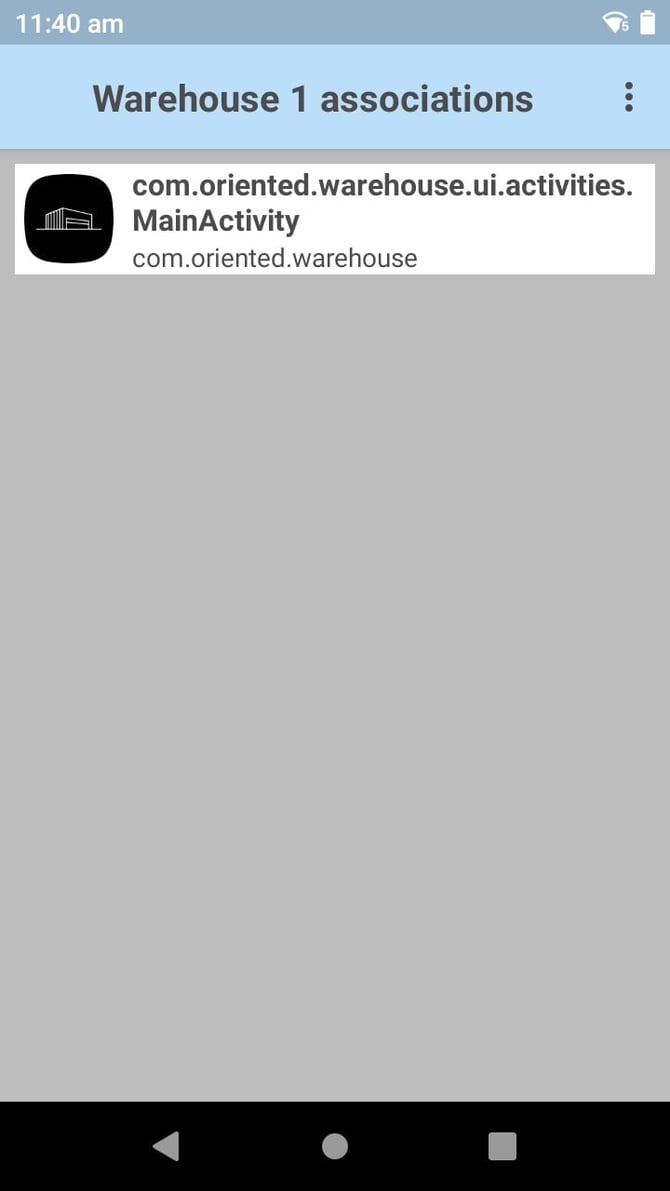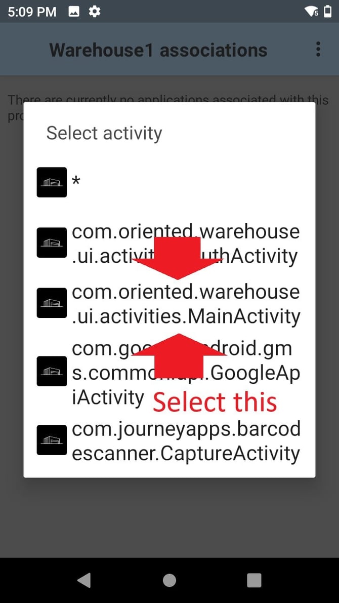 9. From the app activities list, tap the 'com.oriented.warehouse.ui.activities.MainActivity' activity to use DataWedge for that specific activity only: