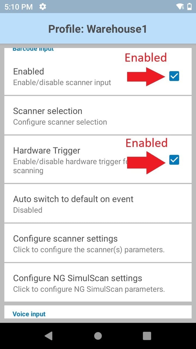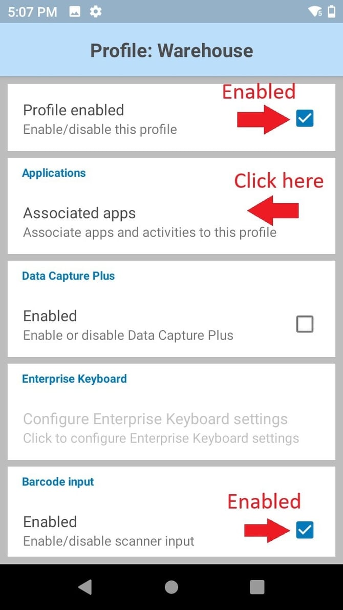 14. The Warehouse Management System app will now use DataWedge for barcode data acquisition.