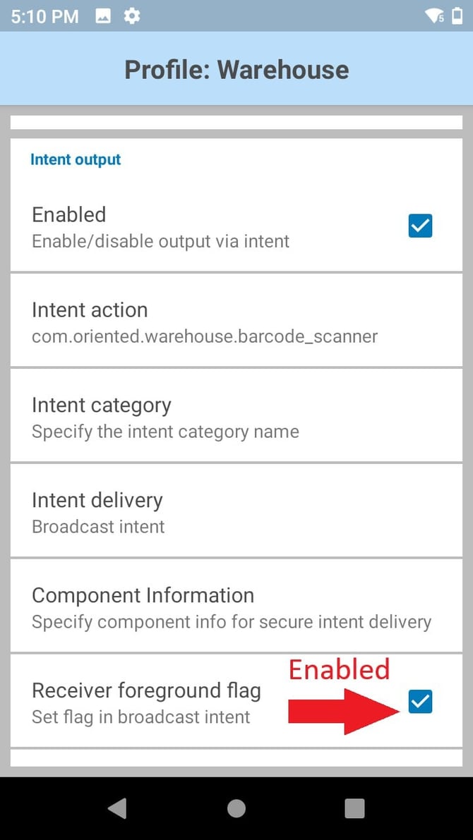 13.5. Check the 'Enabled' box to activate Receiver foreground flag giving the broadcast recipient permission to run at foreground priority with a shorter timeout interval.